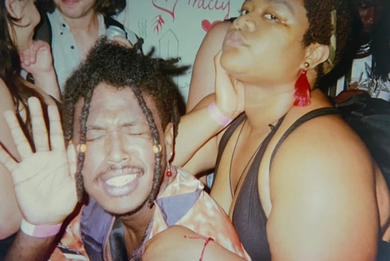 Upon entering The Material Room, the smell and weight of the crowd’s sweat was impossible to ignore. Heat lined the air with moisture, and the music coated each and every body inside with a need to move. It was one of those places where dancing felt required, in a refreshing way. Coordinated dances and dance-offs broke out in the back of the room near the bar. Two people who were going particularly hard smiled at my disposable camera while sweat dripped off their faces. Their teeth shone through the room's purple hue and oozed exhilaration. Watching the third or fourth dance battle of the night, I wondered to myself if this was what the nineties felt like.